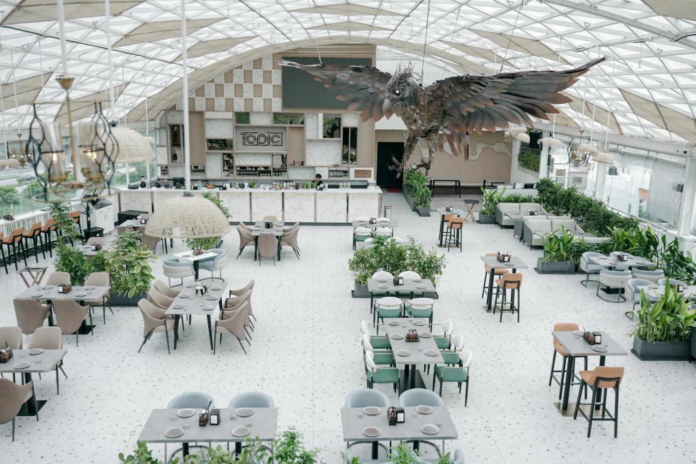 The aparthotel specialises in an à la carte and continental breakfast and breakfast in the room is also available. At Atmosfera Bengaluru, India, the restaurant is open for dinner, lunch and brunch and serves American cuisine.
